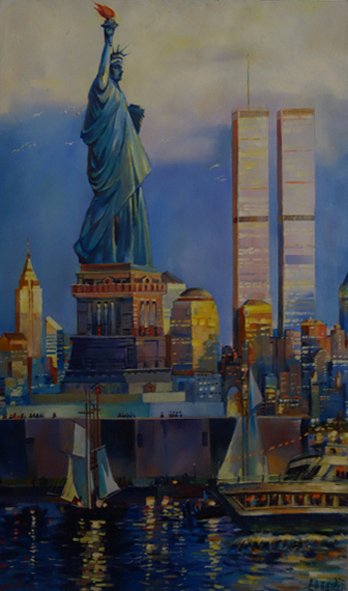 油畫 紐約海港一角